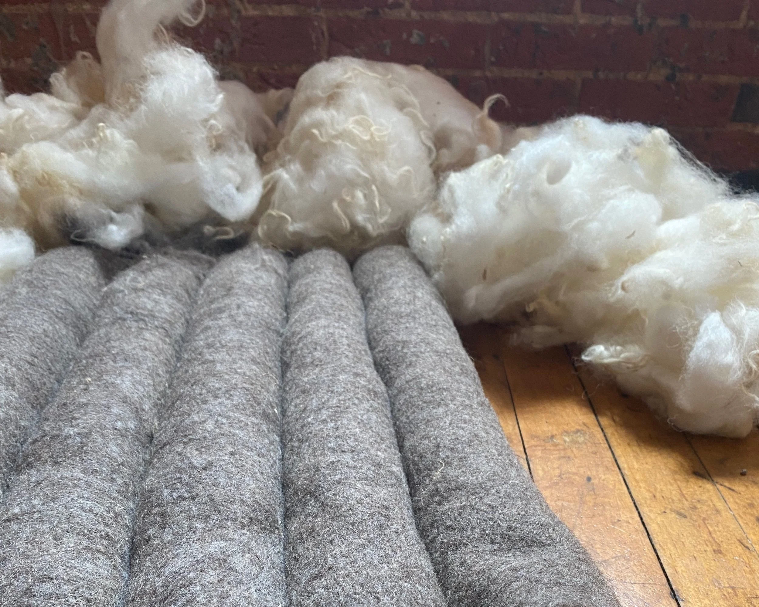 We source our wool from local farms in Maryland and Pennsylvania who practice regenerative agriculture. We work with small fiber mills to process this wool into felt and other batting materials. By purchasing and processing directly from these farms and mills we are supporting our regional fiber supply chain,.